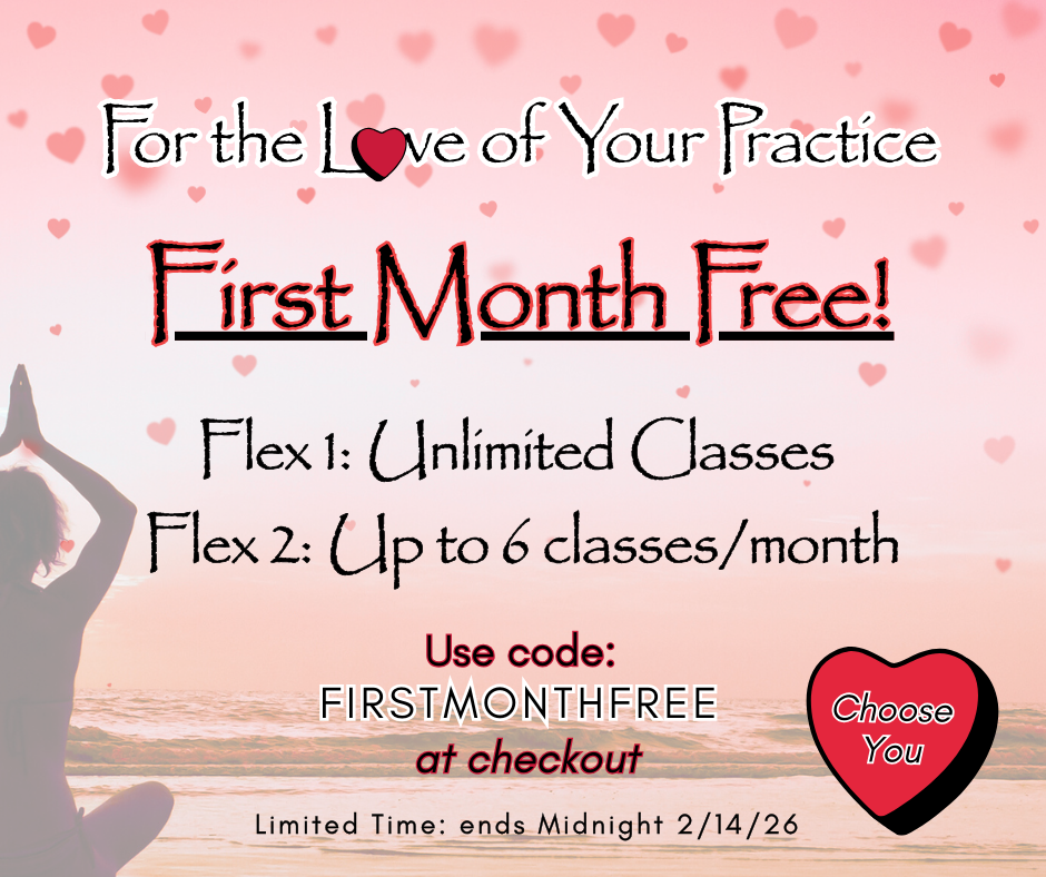 For the love of your practice, we’re offering something special this Valentine’s Day. For a limited time, join a Flex Membership and enjoy your first month free ~ a gentle invitation to move, breathe, and return to yourself.