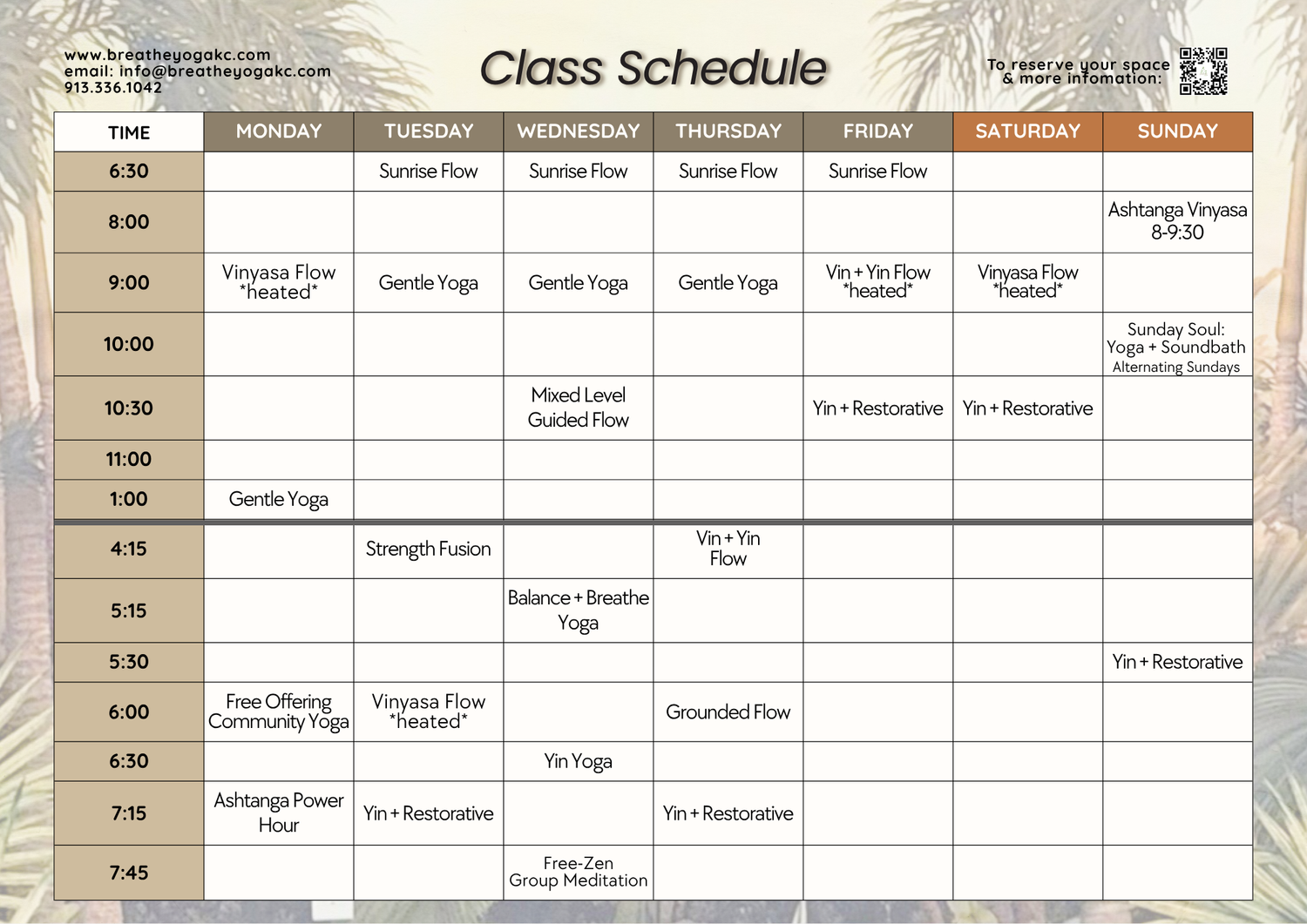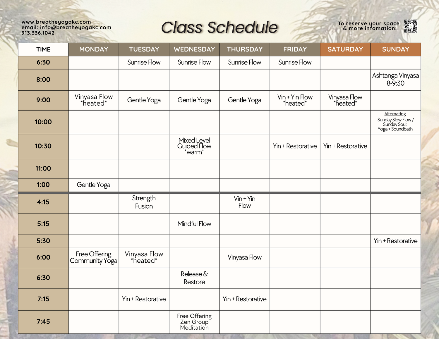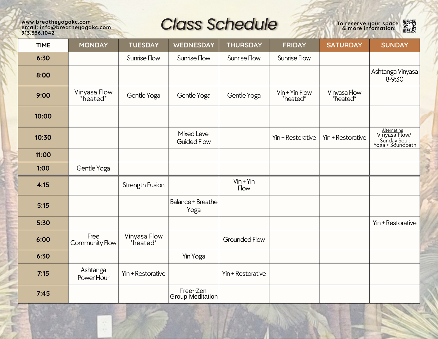 Please note that there may be occasional weather-related closings. Please consult the MindBody app or our Facebook/Instagram page for last minute closings or schedule changes.